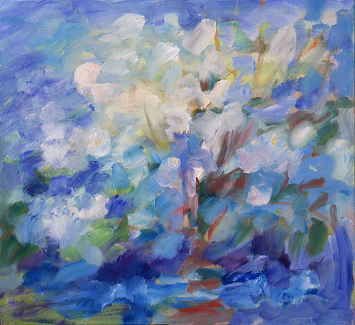 Light skirting across the cadmiums, cobalts and ultramarines refracts to bathe the eye and sensate the brain.
